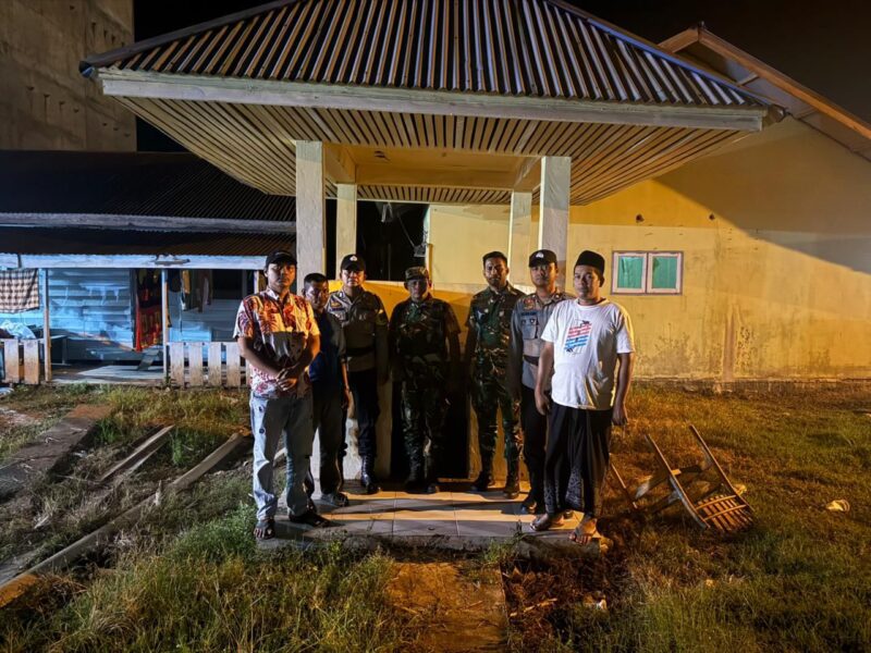 Rohil -baranews,——- Sebagai upaya penguatan Binter dan menumbuh kembangkan kegiatan siskamling di Desa Binaan, Personil Koramil 04/Kubu Kodim 0321 Rohil dpp Sertu Martos bersama warga melaksaksanakan kegiatan Patroli Siskamling.
