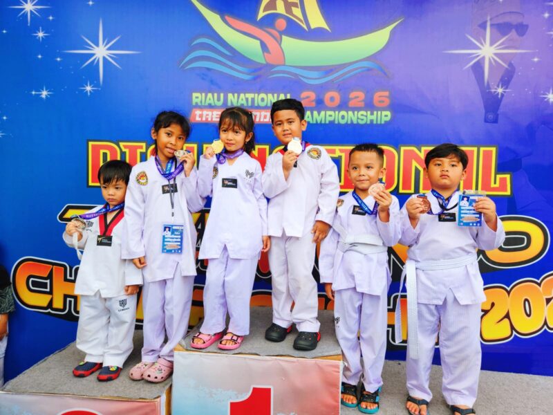 Kampar-Riau,  baranewsriau.com – Atlet Taekwondo Dojang Polres Kampar menunjukkan performa gemilang di Riau National Taekwondo Championship yang digelar di Gelanggang Olahraga Remaja Pekanbaru pada tanggal 31 Januari – 1 Februari 2026. Senin (2/02/2026).