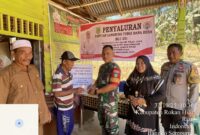 Bhabinsa Koramil 04/Kubu Serda Jhon Mestika Sinaga saat menyerahkan BLT pada warga.Rohil-baranews,——-Babinsa Koramil 04/Kubu Kodim 0321 Rohil Serda Jhon Mestika Sinaga melaksanakan kegiatan pendampingan…