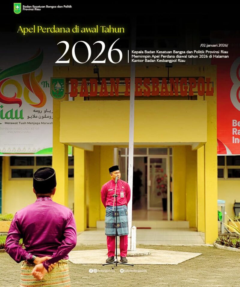 Pekanbaru, baranewsriau.com – Apel Pagi yang dipimpin langsung oleh Kepala Badan Kesbangpol Provinsi Riau Bapak H. Boby Rachmat dan diikuti oleh para pejabat struktural, fungsional, serta seluruh staf di lingkungan Badan Kesbangpol Riau. Apel perdana awal Tahun 2026, pada Hari Jumat Pagi (2/01/2026).