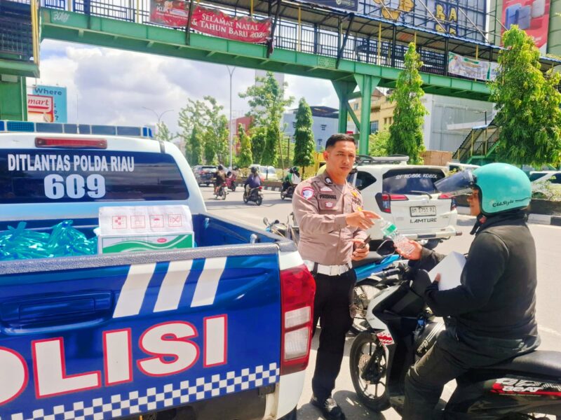 Selain berbagi, personel Ditlantas Polda Riau juga menyampaikan himbauan dan edukasi kepada masyarakat, khususnya calon pemudik, agar senantiasa mengutamakan keselamatan dalam berlalu lintas jelang libur Natal dan Tahun Baru.