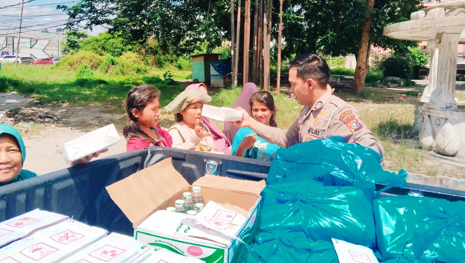 Ia mengaku sudah empat kali menerima paket nasi kotak dari Ditlantas Polda Riau dan merasa sangat terbantu.