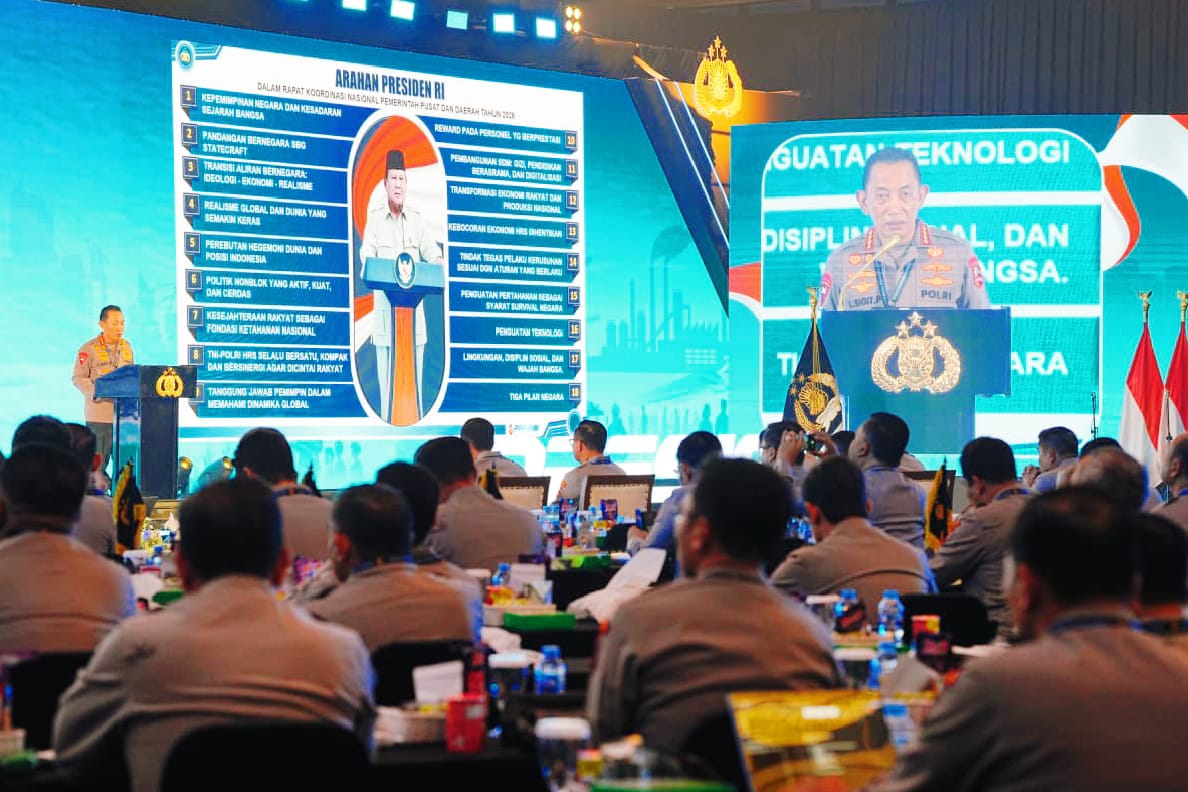 “Kami menjabarkan direktif dari Bapak Presiden, khususnya terkait dengan rencana kerja pemerintah di tahun 2026. Polri memiliki komitmen untuk mendukung dan mengawal penuh program pemerintah,” kata Sigit saat acara rapim Polri di The Krakatau Grand Ballroom Taman Mini Indonesia Indah (TMII), Jakarta Timur, Selasa (10/02/2026).