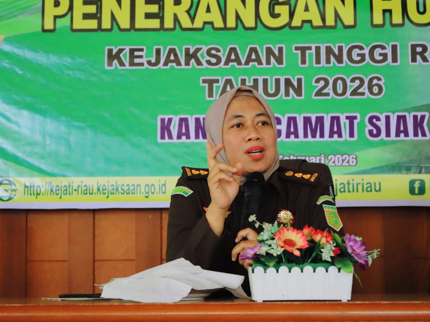 Pekanbaru,  baranewsriau.com –  Kejaksaan Tinggi Riau menggelar kegiatan penerangan hukum (Penkum) program pembinaan masyarakat taat hukum (Binmatkum), bertempat di Kantor Camat Kecamatan Siak, Kabupaten Siak, Provinsi Riau. Rabu (11/02/2026).Adapun yang menjadi narasumber dalam kegiatan tersebut yakni Jaksa Fungsional Bidang Intelijen pada Kejaksaan Tinggi Riau Sukatmini, S.H., M.H., Dalam kesempatan kali ini, Jaksa Fungsional Bidang Intelijen pada Kejaksaan Tinggi Riau menyampaikan materi mengenai “Tanggung Jawab Kepala Desa/ Lurah Terhadap Pemetaan Tanah dan Penyelesaian Sengketa Tanah di Tingkat Kelurahan/ Desa”.Dalam penyampaiannya, Jaksa Fungsional Bidang Intelijen pada Kejaksaan Tinggi Riau Sukatmini, S.H., M.H., menyampaikan bahwa sengketa tanah/ pertanahan merupakan perselisihan tanah antara orang perseorangan, badan hukum, atau lembaga yang tidak berdampak luas. Ada beberapa penyebab sengketa tanah yakni masalah administrasi & dokumen, masalah fisik & batas, faktor hukum & sosial, dan faktor kebijakan & pemekaran.