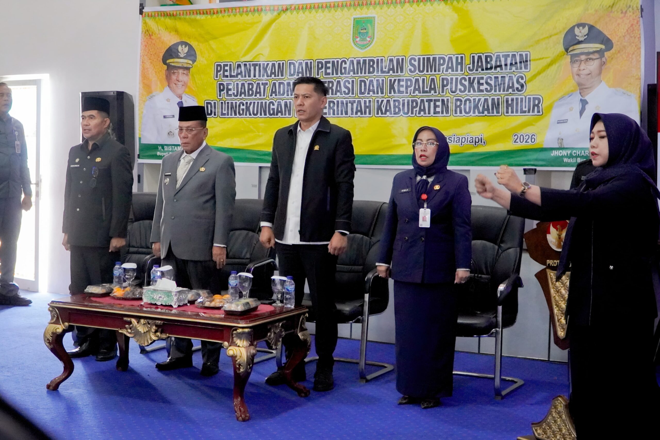 Pelantikan yang digelar di Lantai VIII Kantor Bupati Rokan Hilir tersebut dipimpin langsung oleh Bupati Rokan Hilir, H. Bistamam, dan turut dihadiri Kepala BKPSDM Rohil, anggota DPRD Provinsi Riau Sutan, DPRD Rohil Imam Suroso, para asisten, kepala OPD, serta tamu undangan lainnya.