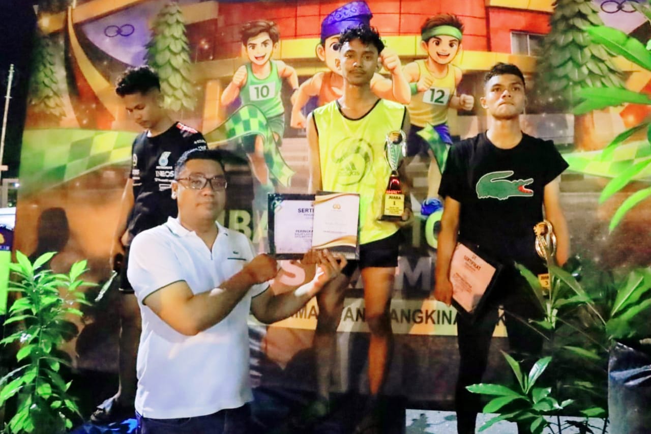 Selain kompetisi lari, Kapolres Kampar juga menyerahkan bibit pohon sebagai wujud dukungan Polri terhadap pelestarian alam. Kegiatan berlangsung semarak, hangat.Daftar Juara: