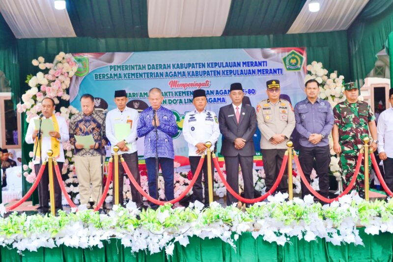 Selatpanjang-Riau,  baranewsriau.com Bupati Kabupaten Kepulauan Meranti, AKBP (Purn) H. Asmar, memimpin Upacara Peringatan Hari Amal Bakti (HAB) ke-80 Kementerian Agama Republik Indonesia Tahun 2026 yang dirangkaikan dengan doa bersama lintas agama. Kegiatan tersebut berlangsung di halaman Kantor Kementerian Agama Kabupaten Kepulauan Meranti, Kamis (8/01/2026).Peringatan HAB ke-80 tahun ini mengusung tema “Umat Rukun dan Sinergi, Indonesia Damai dan Maju”. Dalam amanatnya, Bupati Asmar menegaskan bahwa kerukunan umat beragama tidak hanya dimaknai sebagai ketiadaan konflik, tetapi sebagai energi kebangsaan yang produktif untuk mendorong kemajuan bangsa.