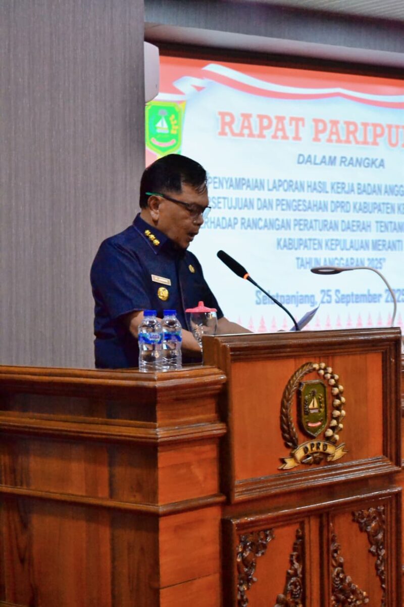 Selatpanjang-Riau, baranewsriau.com – Pemerintah Kabupaten Kepulauan Meranti dan DPRD resmi mengesahkan Rancangan Perubahan Anggaran Pendapatan dan Belanja Daerah (APBD) Tahun Anggaran 2025 dalam rapat paripurna yang digelar di Gedung Paripurna DPRD Kabupaten Kepulauan Meranti. Kamis (25/9/2025).