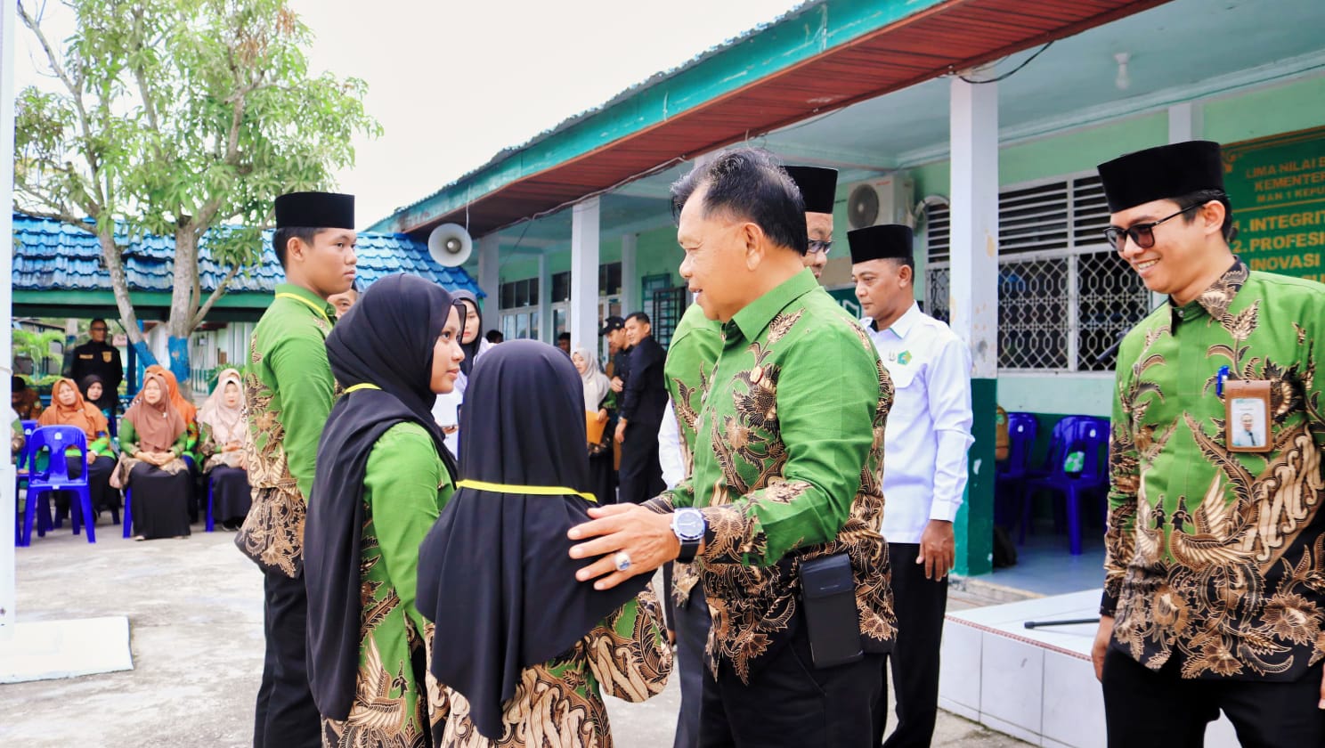 Bupati Asmar juga menekankan pentingnya sinergi antara siswa, guru, dan orang tua dalam memajukan pendidikan Madrasah.