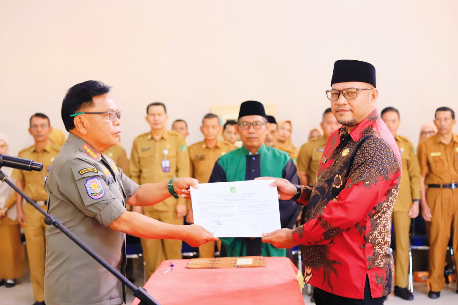 Dalam sambutannya, Bupati Asmar menyampaikan ucapan selamat kepada para Kepala Sekolah yang baru dilantik.