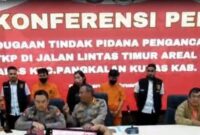 Kepala Bidang Humas Polda Riau Kombes Anom Karbianto saat memberikan pemaparan tertangkapnya 3 oknum wartawan yang diduga akan memeras sopir ekspedisi di Jalan Lintas…