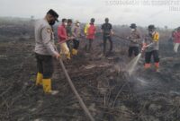 Kapolres Rohil AKBP Isa Imam Syahroni S.I.K.MH saat berjibaku lakukan Pendinginan bersama Tim. Rohil – baranews.Kebakaran lahan dan hutan (Karlahut) yang terjadi di Kecamatan…