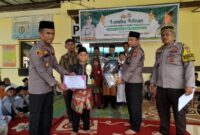 Kapolsek Kubu Iptu Kodam F Sidabutar SH.MH saat menyerahkan Piagam dan Tropi kepada pemenang lomba Azan tingkat SD. Rohil – baranews.Dalam rangka memperingati Hari…