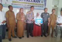 Datin Azlita Am.Keb didampingi Danramil 04/Kubu Kapt Inf Manurung ,Kapolsek Kubu Iptu Kodam F Sidabutar SH.MH dan Sekcam Abdurahmman Aten saat memberikan bantuan BLT…