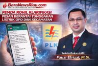 BARANEWSRIAU.com| ROHIL- Pemerintah Kabupaten Rokan Hilir (Pemda Rohil) melalui Sekretaris Daerah (Sekda) Rohil, Fauzi Efrizal, memberikan klarifikasi terkait beredarnya pesan berantai di sejumlah grup…