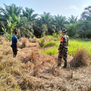 Patroli Personil Koramil hari ini melakukan penyisiran daerah yang dianggap rawan terjadinya kebakaran di RT 02/RW 04 Kepenghuluan Sungai Daun  Kecamatan Pasir Limau Kapas  pada Selasa 24/6-2025. d