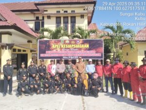 Danramil 04/Kubu diwakili Dpp Serma Bambang Sumantri mengikuti kegiatan Apel kesiap siagaan kebakaran Hutan dan lahan yang sering terjadi saat memasuki musim panas atau kemarau Selasa 29/4-2025.
