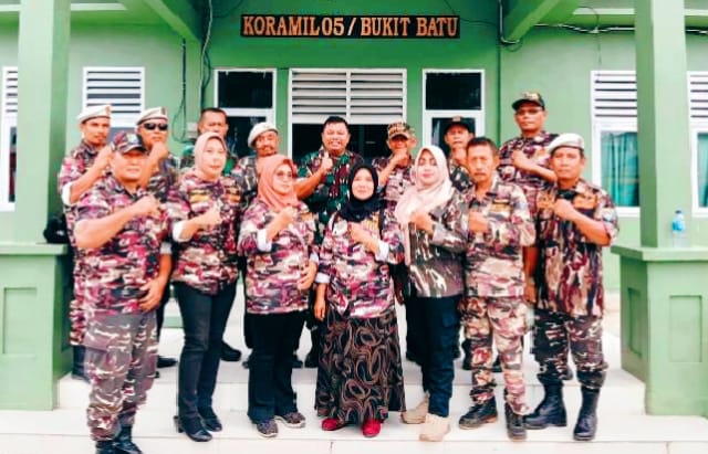 Ket Foto: Danramil 05/Bukit Batu Kapten Inf Ucok Doni Samosir bersama rombongan KB-FKPPI Rayon 06/PWK Sabak Auh usai acara silaturahmi di Makoramil Bukit Batu, Kamis (13/11/2025).