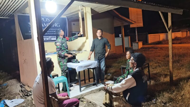 Rohil -baranews,——- Sebagai upaya penguatan Binter dan menumbuh kembangkan kegiatan siskamling di Desa Binaan, Personil Koramil 04/Kubu dpp Serda Heri Susanto bersama Ormas dan warga melaksaksanakan kegiatan Patroli Siskamling.
