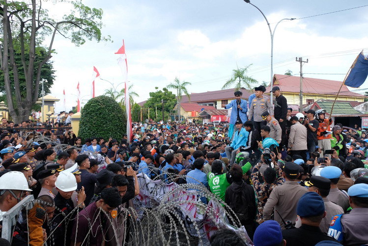 Kapolda Riau Irjen Herry Heryawan turun menemui massa. Dia berdiri di atas mobil komando bersama orator demo, menyampaikan apresiasinya kepada massa yang menyampaikan aspirasi secara damai.