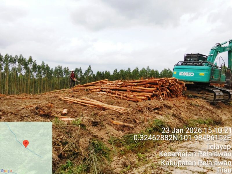 Bahkan hingga berita ini diterbitkan pada 24 Januari 2026, PT Arara Abadi diduga masih melakukan kegiatan penebangan di lokasi tersebut dengan pengawalan oleh petugas keamanan perusahaan.