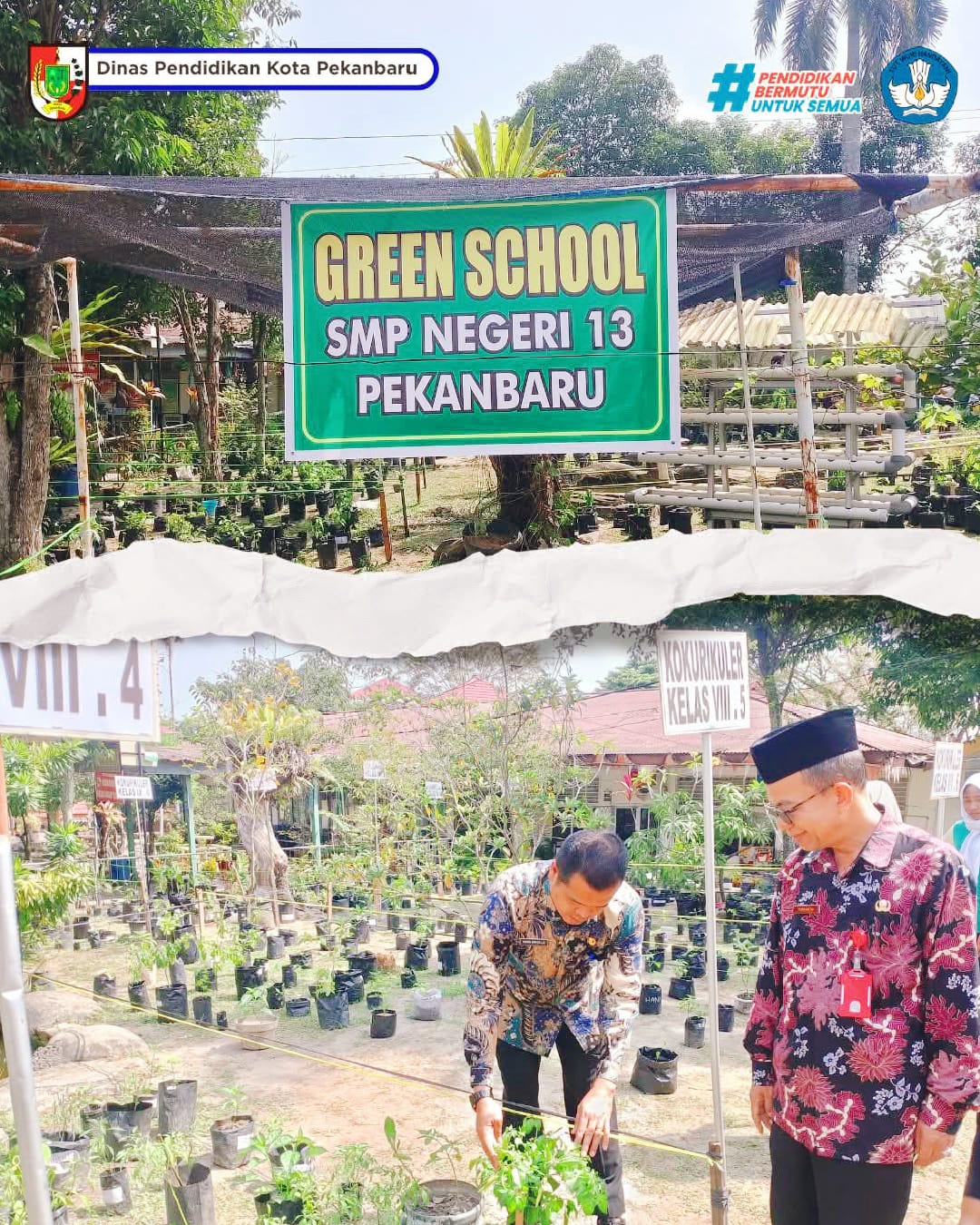 Kepala Dinas Pendidikan Kota Pekanbaru melalui kepala bidang pembinaan pendidikan SMP, Dr. Irfan Maidelis, S.Pd., M.M., menyampaikan bahwa sekolah merupakan tempat strategis untuk menumbuhkan karakter cinta lingkungan.