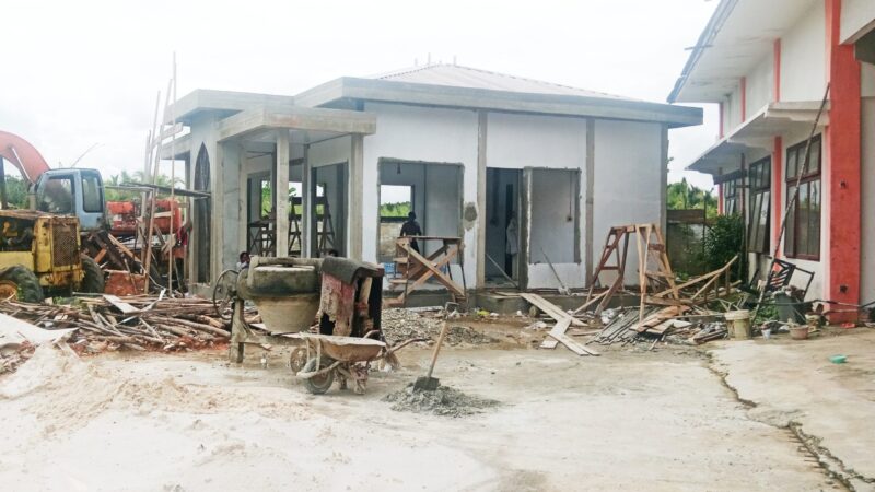 ROHIL, Baranewsriau.com | Terlihat satu unit bangunan Mushola terletak di sudut belakang kantor Dinas Pekerjaan Umum dan Tata Ruang (PUTR) Kabupaten Rokan Hilir (Rohil) masih dalam proses pengerjaan.