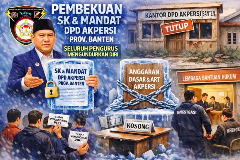 Jakarta, baranewsriau.com – Dewan Pimpinan Pusat Asosiasi Keluarga Pers Indonesia (DPP AKPERSI) secara resmi mengambil langkah tegas dengan membekukan Surat Keputusan (SK) dan mandat kepengurusan DPD AKPERSI Provinsi Banten. Kebijakan ini diambil setelah melalui proses investigasi menyeluruh terhadap kinerja dan arah organisasi kepengurusan sebelumnya. Sabtu (4/04/2026).
