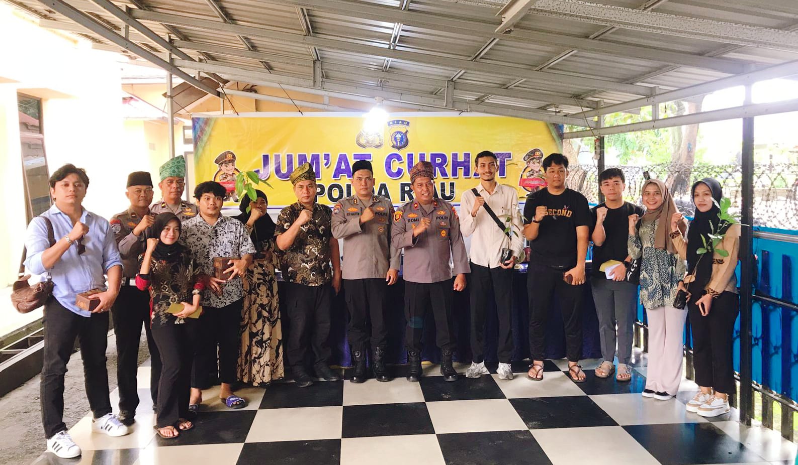 Kegiatan Jumat Curhat ditutup dengan pembagian bibit pohon kepada masyarakat sebagai bentuk kepedulian terhadap lingkungan, dilanjutkan dengan foto bersama. Sekitar pukul 09.50 WIB, kegiatan berakhir dengan situasi aman dan kondusif.