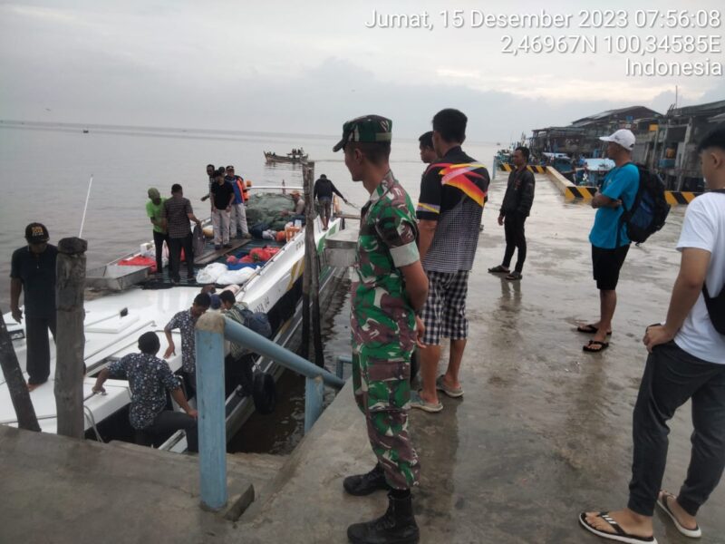 Ramainya warga masyarakat yang menggunakan jalur laut menuju Panipahan maupun yang akan keluar melalui Pelabuhan ,Babinsa Koramil 04/Kubu bersama Personil TNI-AL dan Petugas KPLP terus melaksanakan giat Patroli Jum’at (15/12-2023)
