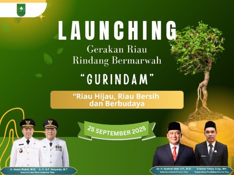 Pekanbaru, baranewsriau.com – Gubernur Riau meluncurkan gerakan”Riau Rindang Bermarwah” yang juga disebut dengan “Gurindam Riau Hijau, Riau Bersih, dan Berbudaya”. Launching Kegiatan ini dilaksanakan di SMA Negeri 19 Pekanbaru dan dihadiri oleh Kepala Dinas Pendidikan Provinsi Riau, Erisman Yahya, S.Ag., M.H., beserta jajarannya, serta seluruh Kepala Sekolah SMA Negeri Pekanbaru. Kamis (25/9/2025).
