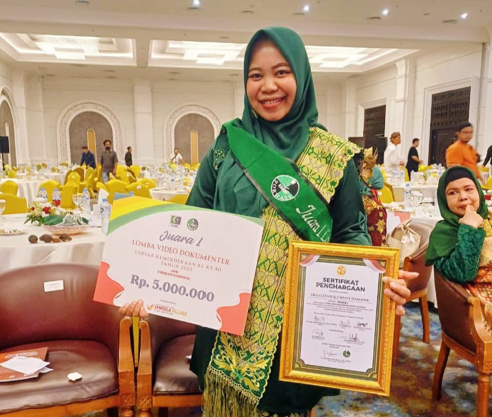 Eka Lestari guru SMP Negeri 4 Pekanbaru, dan Chessy Damanik adalah guru SLB Siak-Riau, mempersembahkan video dokumenter dengan judul “Jejak Kiprah Perempuan Siak dari Masa ke Masa” yang memukau dewan juri.