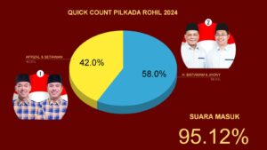 Rohil – baranews, – Pasangan calon Bupati dan Wakil Bupati Rokan Hilir, H. Bistamam dan Jhony Charles, meraih kemenangan sementara dengan perolehan suara mencapai 58% berdasarkan hasil hitung cepat (quick count) hingga malam ini. Kemenangan ini menandakan kepercayaan besar masyarakat terhadap visi dan misi pasangan yang dikenal dengan program pembangunan berkelanjutan dan perhatian pada kesejahteraan rakyat.