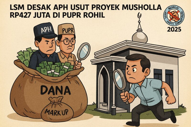 Sejalan dengan semangat pemberantasan korupsi, Lembaga Swadaya Masyarakat Team Operasional Penyelamatan Aset Negara Republik Indonesia (LSM TOPAN RI) Kabupaten Rokan Hilir mendesak Aparat Penegak Hukum (APH) untuk memeriksa proyek pembangunan musholla di lingkungan Kantor Dinas Pekerjaan Umum dan Penataan Ruang (PUPR) Rokan Hilir yang dinilai sarat dugaan penyimpangan.