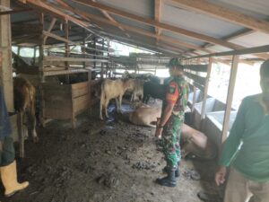 Untuk mengetahui perkembangan serta penularan Penyakit Mulut maupun Kuku Personil Koramil terus melaksanakan kegiatan Pengecekan pada ternak sapi