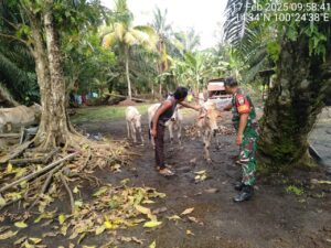 Hindari Penyebaran PMK,Personil Koramil 04-Kubu Cek Ternak Warga
