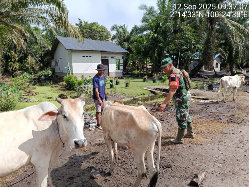 Babinsa Koramil 04/Kubu Serda Boysandi melaksanakan kegiatan pengecekan ternak sapi milik warga di wilayah Desa binaan.