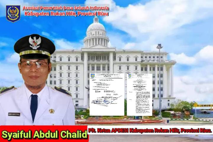 Pengangkatan Syaiful Abdul Chalid sebagai Plt Ketua APDESI Rohil resmi ditandatangani langsung oleh Ketua Umum DPD APDESI Riau Abdul Rakhman Chan dan Wakil Sekretaris Firdaus, M.Pd., melanjutkan estafet kepemimpinan APDESI Rohil yang sebelumnya di jabat oleh Almarhum H. Sutejo, S.Pd., yang meninggal dunia pada Sabtu 05 April 2025 lalu.