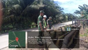Personil Koramil 04/Kubu Kodim 0321 Rohil Dpp Serda Jhon Mestika Sinaga menggelar kegiatan Patroli bersama Petugas Scurity PT.ABB di areal Objek Vital Nasional PT Pertamina Hulu Rokan (PHR) Sektor 5 Koramil 04 /Kubu pada Sabtu 17/5-2025