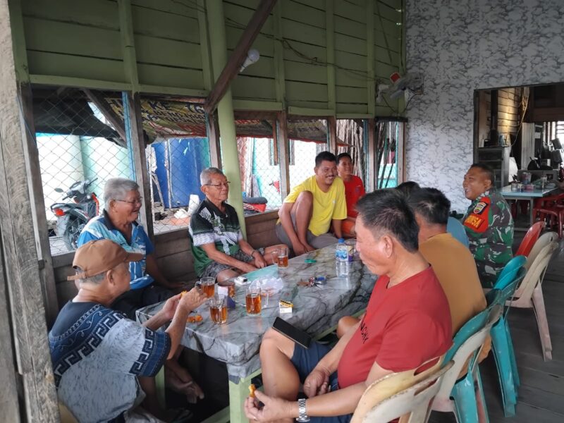 Rohil- baranews,— Personil Koramil 04/Kubu Kodim 0321 Rohil Serda Musriyanto yang bertugas di Posramil Panipahan melaksanakan kegiatan Komonikasi (Komsos) dengan beberapa Warga.