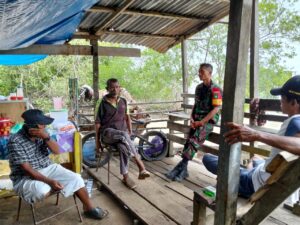 Rohil- baranews,— Personil Koramil 04/Kubu Kodim 0321 Rohil Serda Musriyanto yang bertugas di Posramil Panipahan melaksanakan kegiatan Komonikasi (Komsos) dengan beberapa Warga.