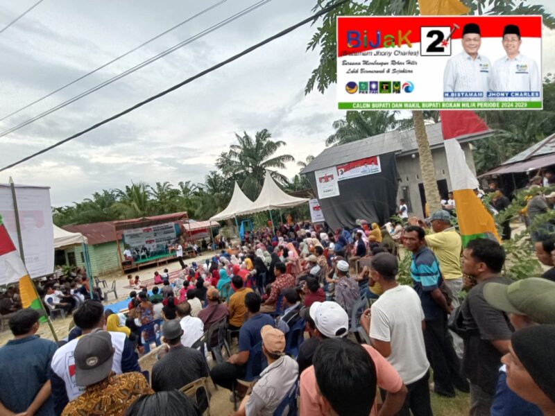 Rohil- baranews, – Pasangan calon Bupati dan Wakil Bupati Rokan Hilir, H. Bistamam dan Jhony Charles, menggelar kampanye tatap muka perdana mereka di rumah Suyanto, Dusun Pematang Kunyit, Kepenghuluan Bangko Permata, Kecamatan Bangko Pusako. Acara ini berlangsung dari pukul 15.00 hingga 18.00 WIB, dengan dihadiri sekitar 700 warga setempat yang antusias mendengarkan visi dan misi pasangan calon.