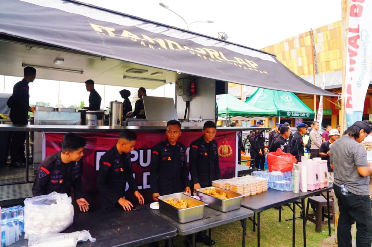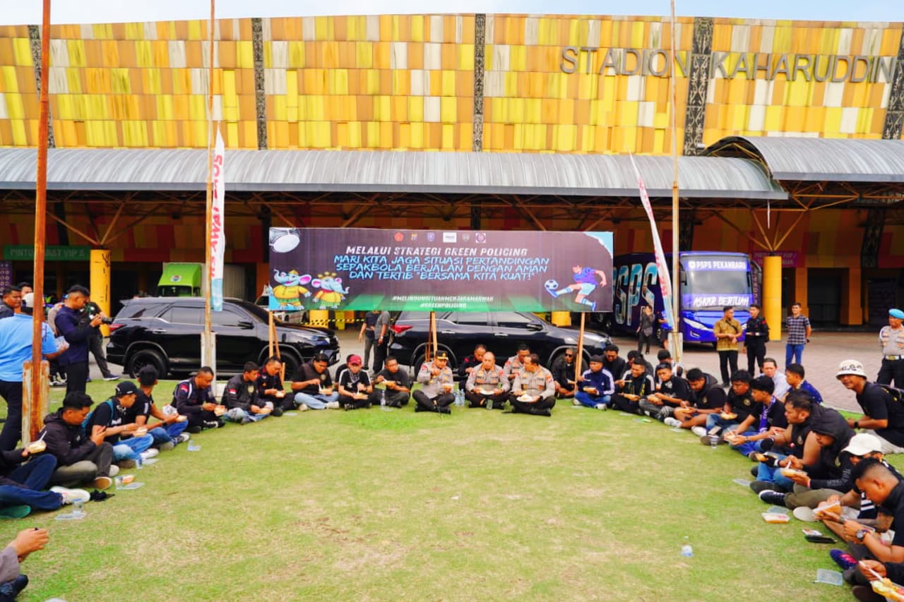Suasana penuh keakraban terasa saat Irjen Herry bersama jajaran Polda Riau duduk bersama para suporter di taman teras depan stadion, dilanjutkan dengan makan bersama yang disiapkan oleh Dapur Umum Korps Brimob Polda Riau.
