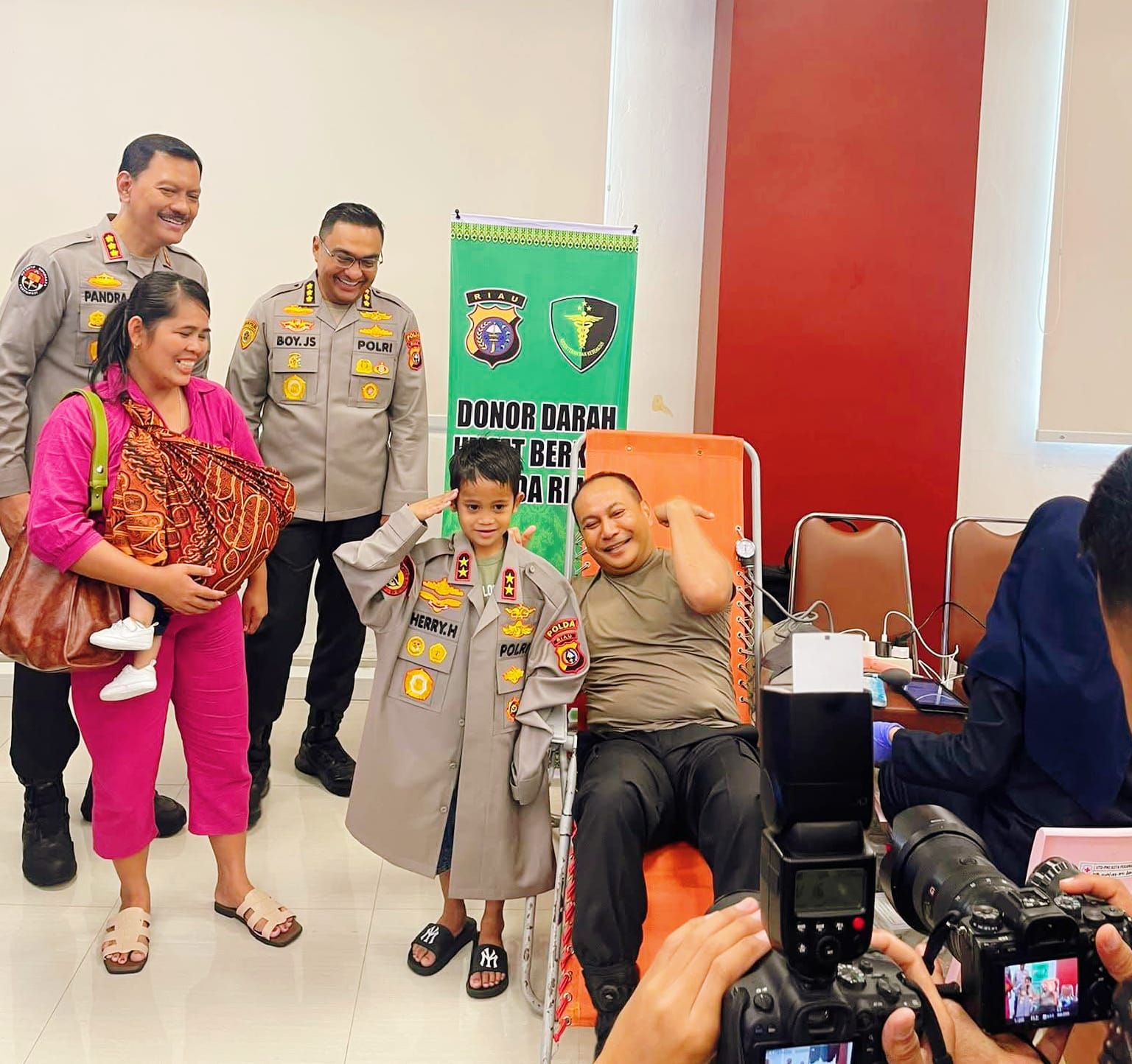 Orangtua dan Theo yang awalnya merasa takut dan akhirnya hormat, merasa sangat terharu dengan sambutan hangat dari Kapolda Riau dan jajarannya.