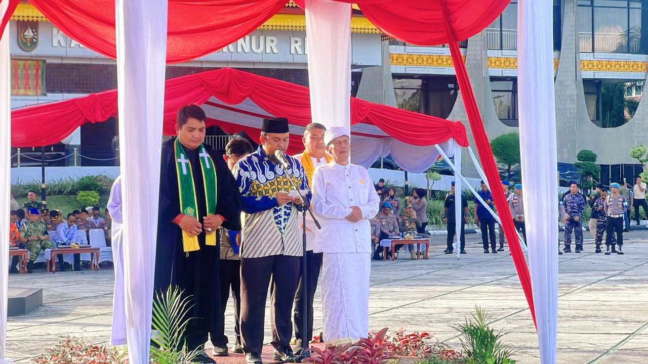 Pekanbaru-MP,  baranewsriau.com – Apel Pengamanan Tahun Baru 2026 yang dirangkaikan doa bersama lintas agama digelar di halaman Kantor Gubernur Riau, Jalan Jenderal Sudirman, Kota Pekanbaru. Kapolda Riau Himbau dan serukan Perayaan Tahun Baru tanpa hura-hura Rabu sore (31/12/2025).Apel pengamanan ini dipimpin langsung oleh Pelaksana Tugas (Plt) Gubernur Riau, SF Haryanto, dan dihadiri Kapolda Riau Irjen Pol Herry Heryawan, Danrem 031/Wira Bima, unsur TNI, Basarnas, BPBD, serta jajaran Forkopimda Provinsi Riau.
