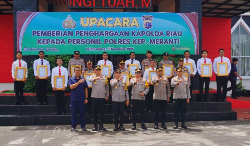 Selatpanjang-Riau, baranewsriau.com – Upacara Pemberian Penghargaan Kapolda Riau Kepada Personil Polres Kepulauan Meranti. Langsung di Lapangan Mako Polres Kepulauan Meranti langsung dihadiri oleh Kapolda Riau Irjen Pol Herry Heryawan S.I.K., M.H., M.Hum., Selasa pagi (18/11/2025).