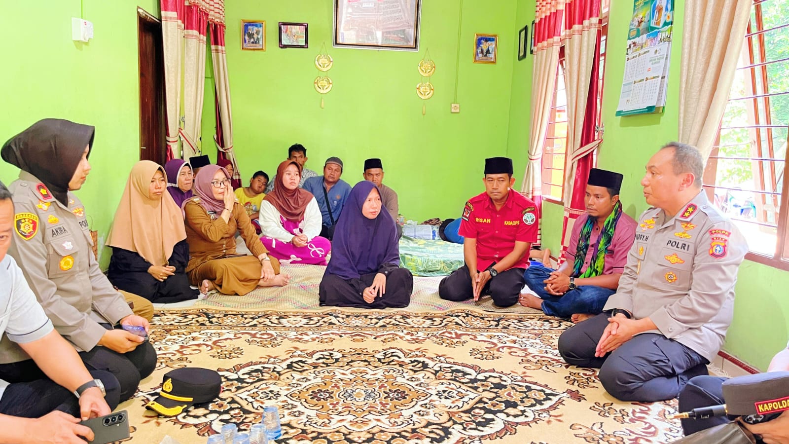 Dalam suasana duka, Kapolda Riau menyampaikan belasungkawa secara langsung kepada keluarga almarhum yang meninggalkan seorang istri dan tiga orang anak.