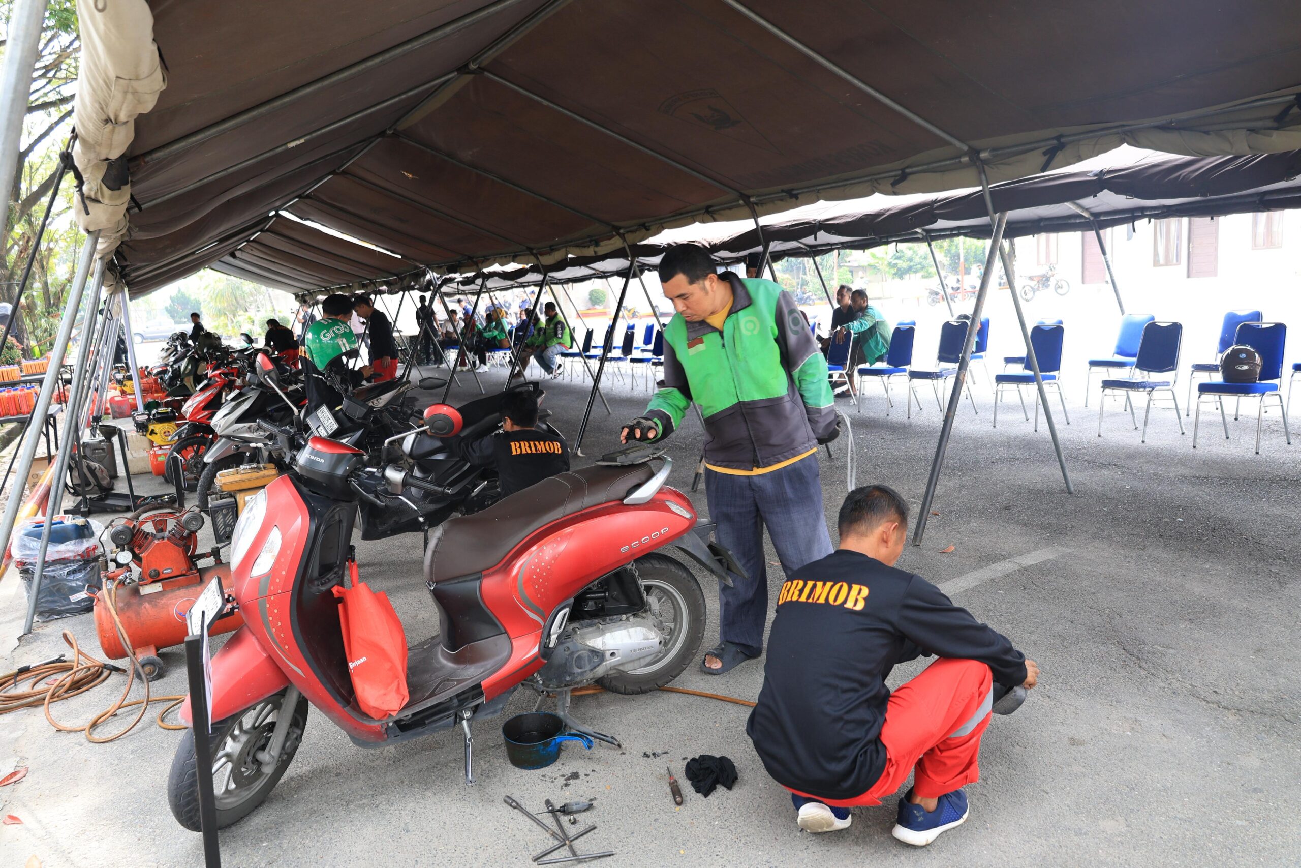Kapolda Riau Penuhi Janji: Bengkel Gratis Untuk Ojol di Mako Brimob Pekanbaru di Serbu