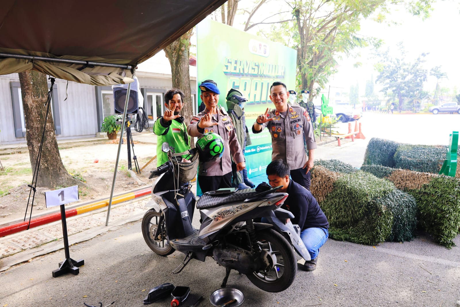 Komandan Satuan Brimob Polda Riau Kombes I Ketut Gede Adi Wibawa mengatakan ada 10 mekanik di bengkel gratis yang melayani para ojol.“Kami memberdayakan bengkel-bengkel lokal yang ada di Pekanbaru, saat ini kami menyiapkan 10 orang mekanik,” kata Kombes Ketut kepada wartawan di lokasi, Rabu (18/03/2026).