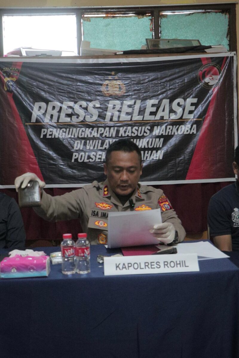 Rokan Hilir – Polres Rokan Hilir kembali menunjukkan komitmennya dalam memberantas peredaran narkotika di wilayah pesisir. Hal ini ditandai dengan pelaksanaan press release pengungkapan kasus narkoba yang dipimpin langsung oleh Kapolres Rokan Hilir, AKBP Isa Imam Syahroni, S.I.K., M.H, di Mapolsek Panipahan, Kamis (23/4/2026) sekira pukul 17.50 WIB.